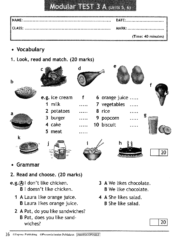 Образцы текущего контроля к учебнику Spotlight 3 класс