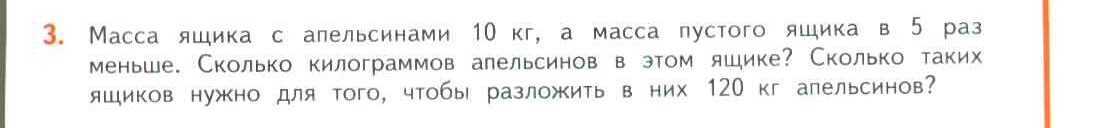 Масса ящика с апельсинами 10 кг, а масса пустого ящика в 5 раз меньше. Сколько килограммов апельсинов в этом ящике? Сколько таких ящиков нужно для того, чтобы разложить в них 120 кг апельсинов?