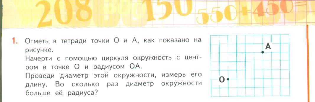 Проведи диаметр этой окружности, измерь его длину. Во сколько раз диаметр окружности больше ее радиуса?