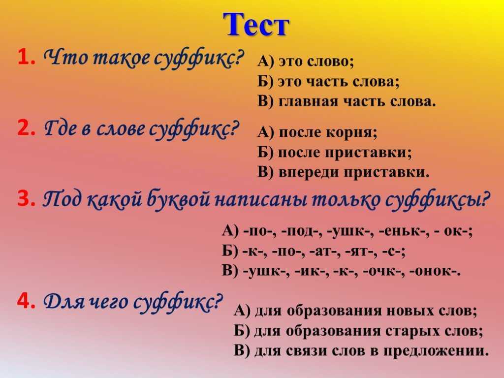 Третий класс Суффиксы Вопросы для тестов и рабочих листов