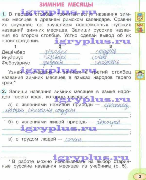 2. Запишите названия зимних месяцев в языке народов твоего края, которые связаны с 1) с явлениями неживой природы; 2) с явлениями живой природы; 3) с трудом людей.