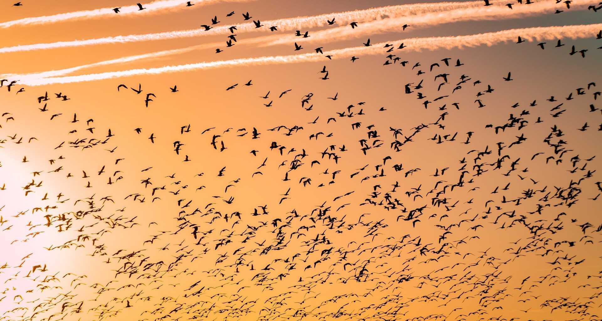 | 194 | Чем холоднее становится вокруг, тем чаще в небе можно увидеть птичьи стаи, покидающие края, в которых они провели все лето. | |