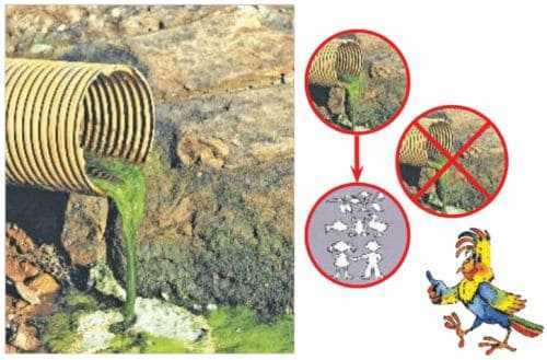 Рассмотрите фотографию и схему. Объясните, отчего загрязняется вода, на что это влияет, как защитить воду от загрязнения.