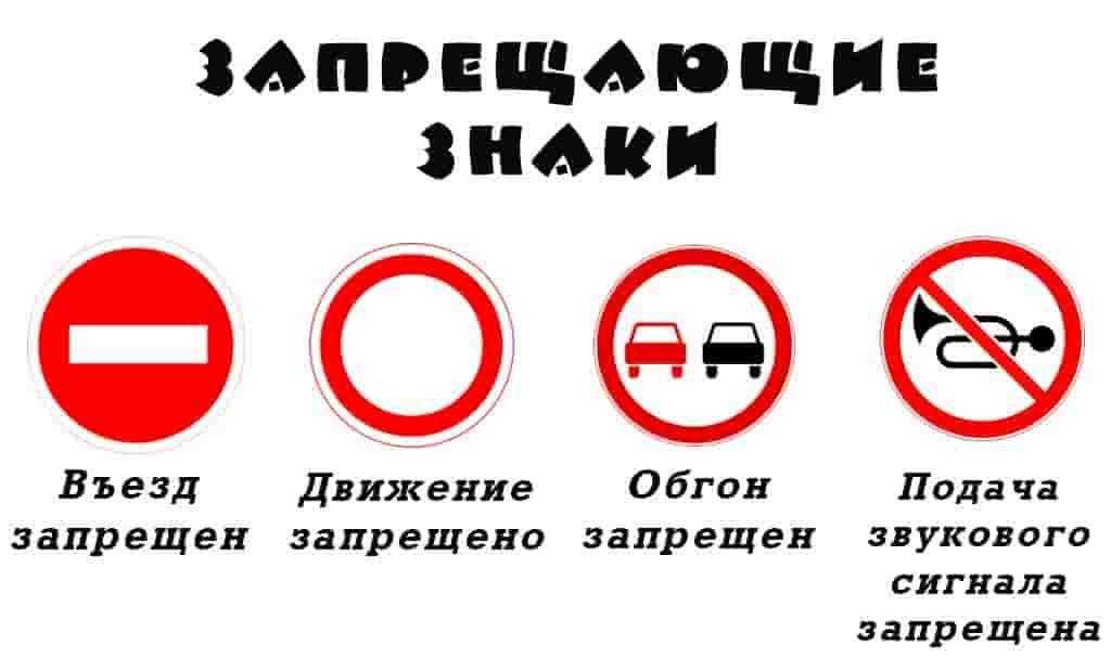 Въезд запрещён:Движение запрещено:Обгон запрещён:Подача звукового сигнала запрещена: